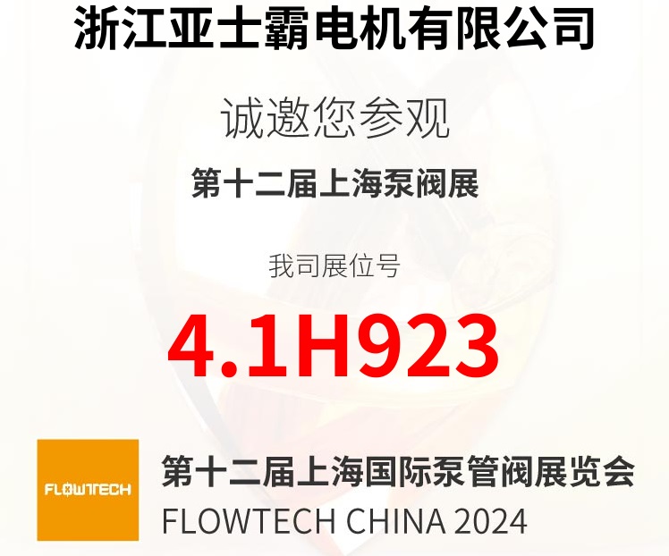 浙江亞士霸電機有限公司將亮相6月第十三屆上海國際泵閥展,4.1H923展位恭候您!